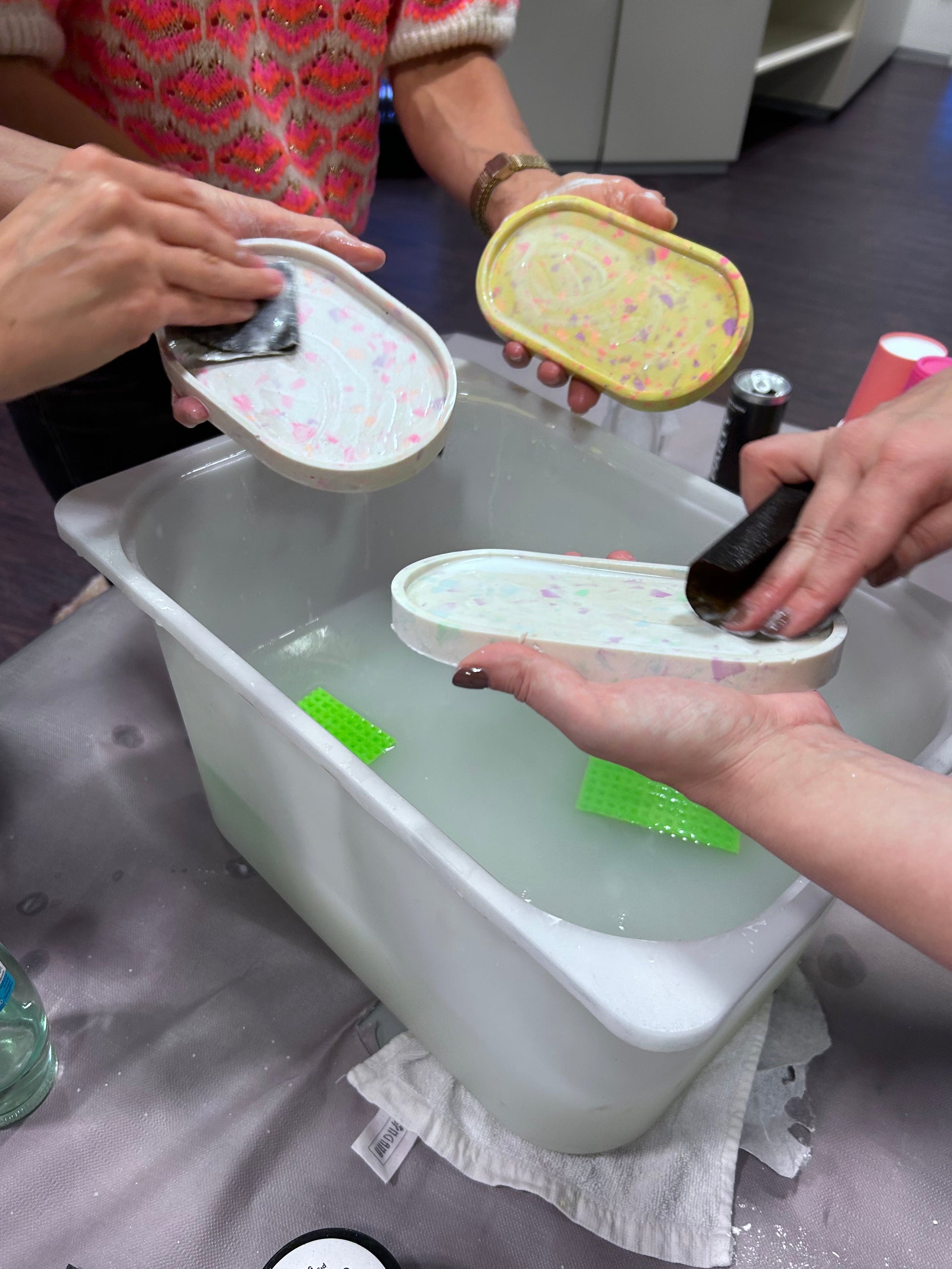 - alle Materialen zur Herstellung von 2-3 Jesmonite-Design-Objekten